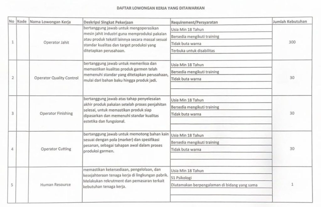 Membuka lowongan kerja pada Career Expo T*Work 3 adalah sebagai berikut :