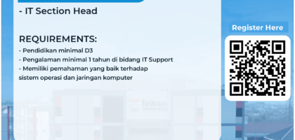 🎓 CAMPUS HIRING 📢 CAMPUS HIRING – TELKOM UNIVERSITY PURWOKERTO Bekerja sama dengan PT. Sutanto Arifchandra Elektronik (KITANI) 💼 Posisi: IT Section Head 📍 Lokasi: